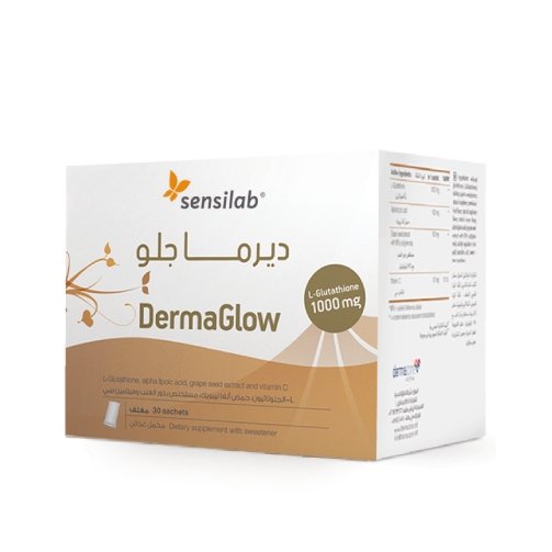 بودرة ديرماجلو لتنقية بشرة الوجه | 30 كيس   Sensilab DermaGlow - أكياس بودرة جلوتاثيون الطبيعي - بشرة مشرقة وناعمة وأكثر شبابًا نظرة عامة على المنتج تحتوي بودرة ديرماجلو DermaGlow على مجموعة من أقوى مضادات...