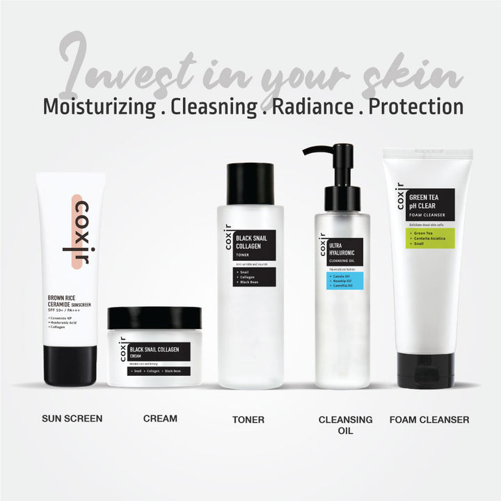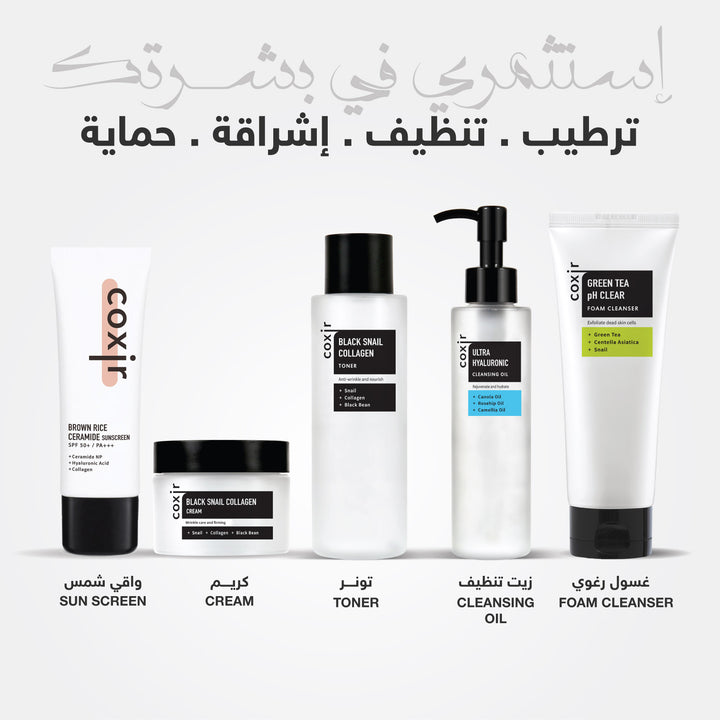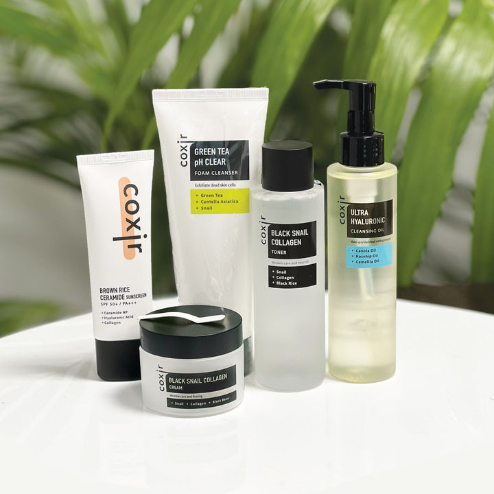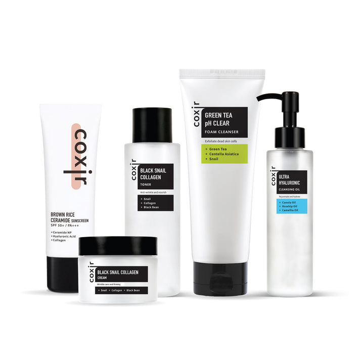 تقدم هذه الباقة من كوكسير منتجات تجمع ما بين التنظيف العميق والحماية الفعّالة للبشرة؛ إذ أنها تحتوي على زيت التنظيف والتخلص من المكياج وغسول تنظيف البشرة اليومي من الشوائب بالإضافة إلى كلًا من واقي الشمس والتونر وكريم الترطيب التي كلًا من عناصرها تتغلغل بسهولة إلى أعماق البشرة وتغذيها بعد عملية تنظيف البشرة.