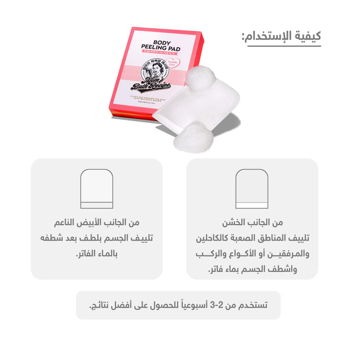 - تلييف الجسم جيدًا بليفة التقشير ثم شطف الجسم بالماء.