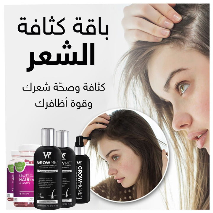 Grow Me is formulated with premium natural ingredients such as Caffeine, Biotin, Argan Oil, Niacinamide, Rosemary Extract, Allantoin, Hydrolyzed lupin protein, which all work in conjunction to stimulate hair growth.