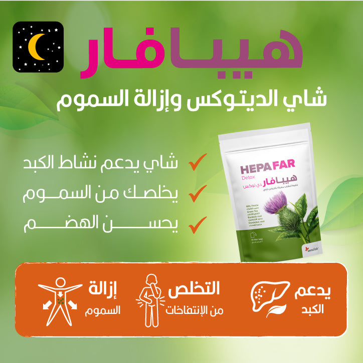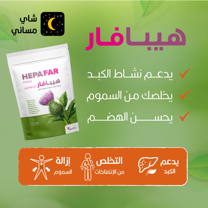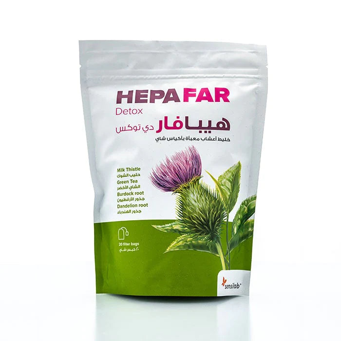 HepaFar Detox tea is made up of a safe and gentle 100% herbal blend supporting your liver, kidneys and digestion.