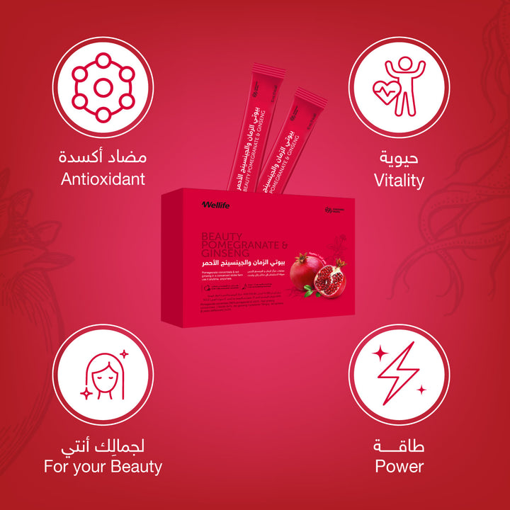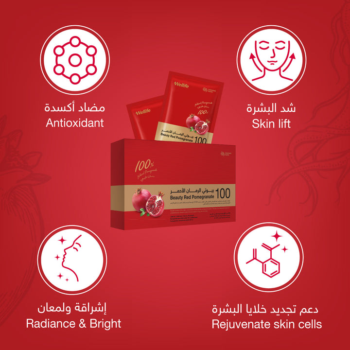 2. Red Pomegranate Beauty Concentrate (50ml x 15 sachets): Boosts collagen production, hydrates skin, and addresses common skin concerns such as acne, eczema, and signs of aging.