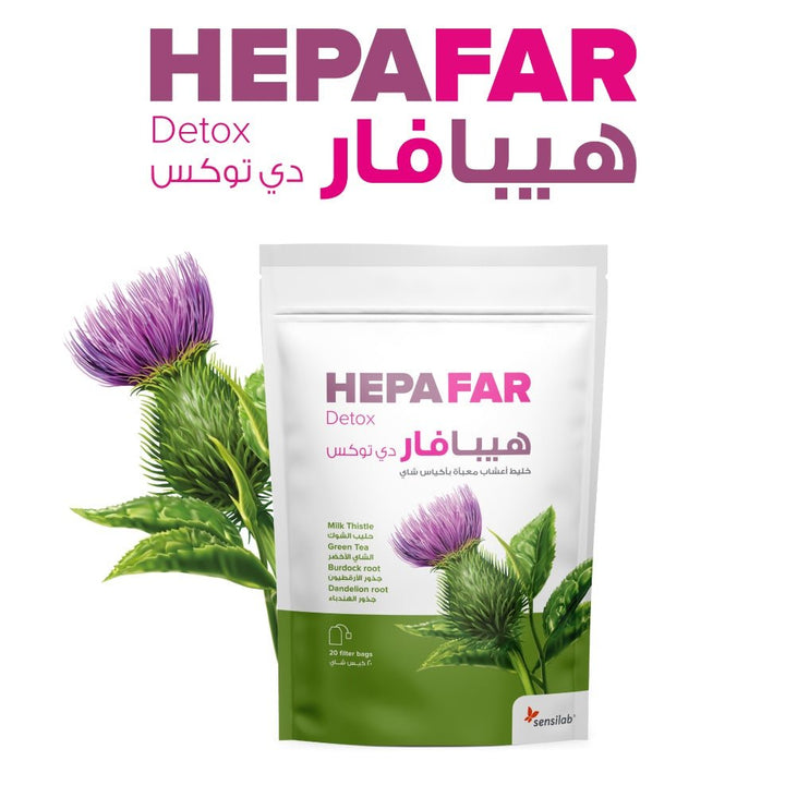 HepaFar Detox tea is made up of a safe and gentle 100% herbal blend supporting your liver, kidneys and digestion.