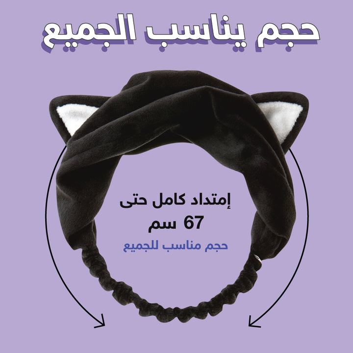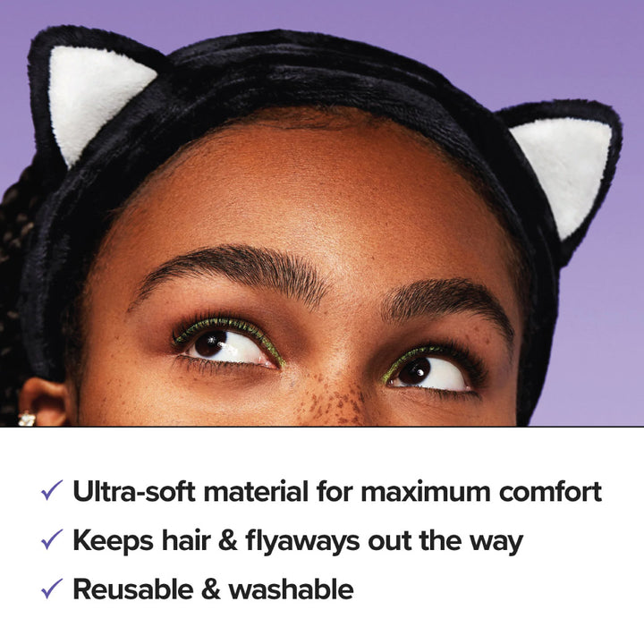 Wear the headband with the black cat ears at the top to keep hair away from the face.