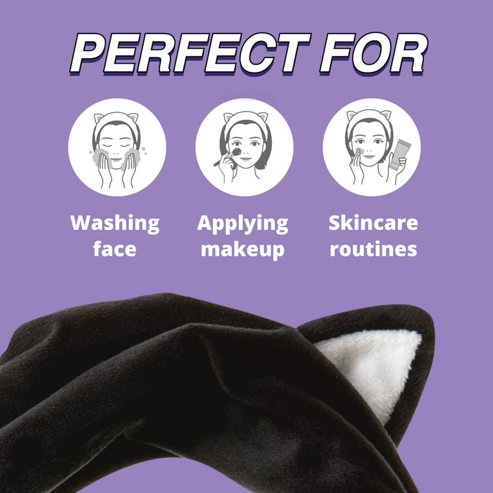 Elastic Hair Band For Skincare Routine - Black Cat