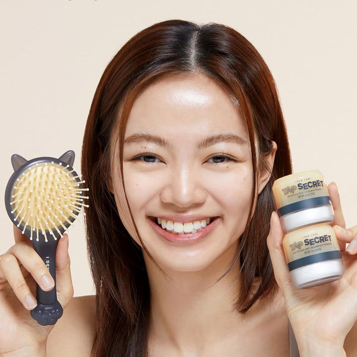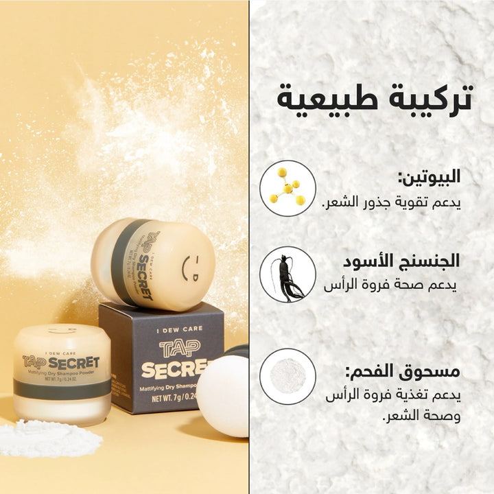 The I Dew Care Tap Secret Box includes two bottles of Tap Secret Dry Shampoo, designed to invigorate and refresh the scalp by absorbing excess oils and fats. It also strengthens hair with natural ingredients that nourish hair follicles, such as biotin and black ginseng.