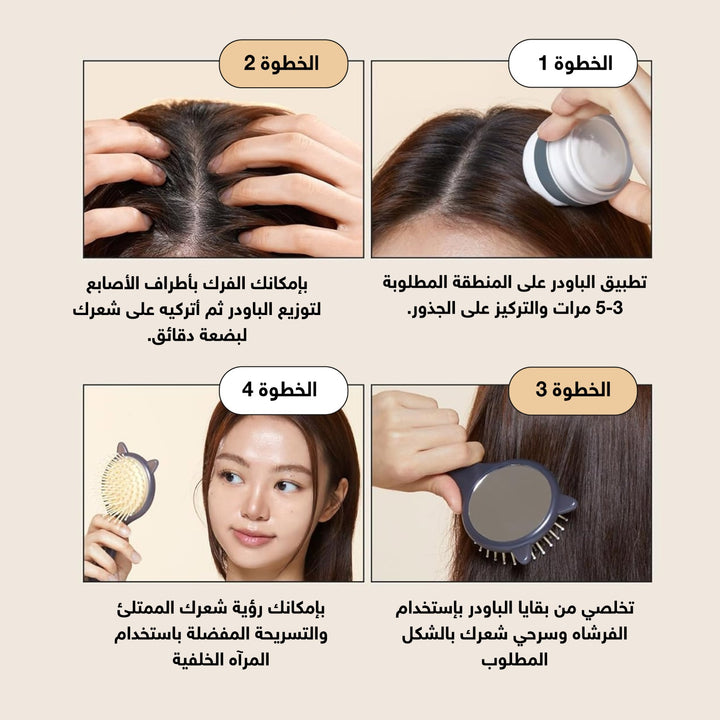 1. Apply the powder using the included applicator tool to the desired area 3-5 times, focusing on the roots.