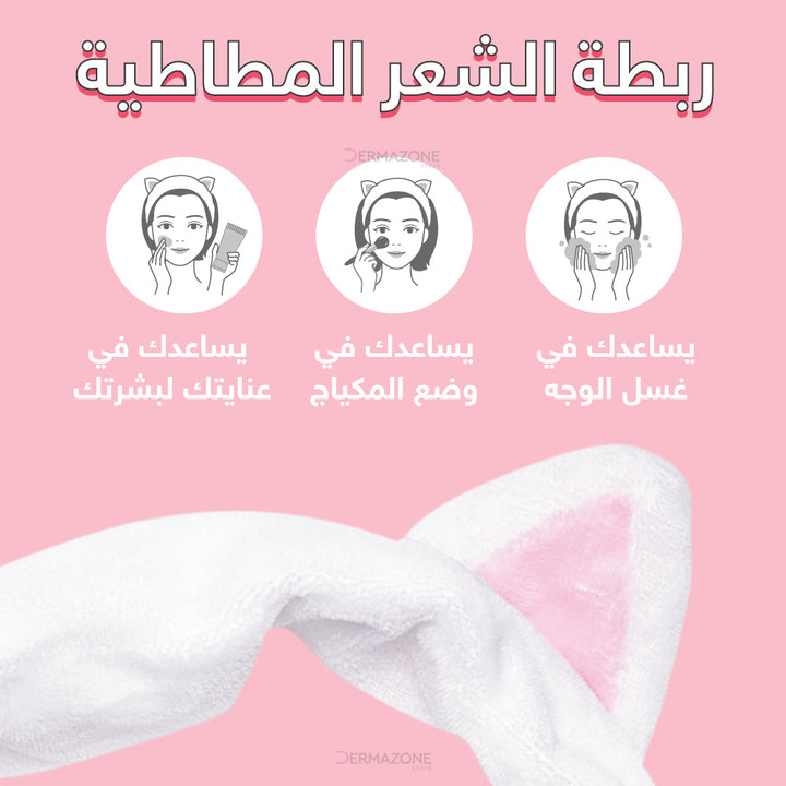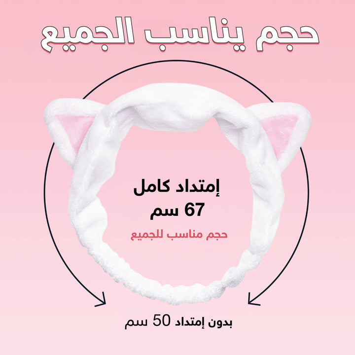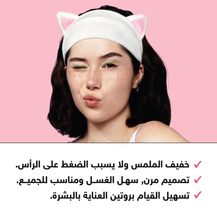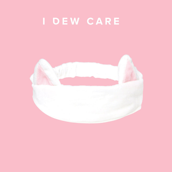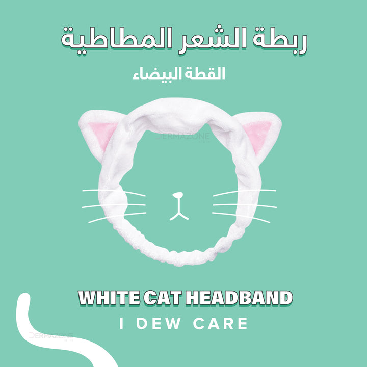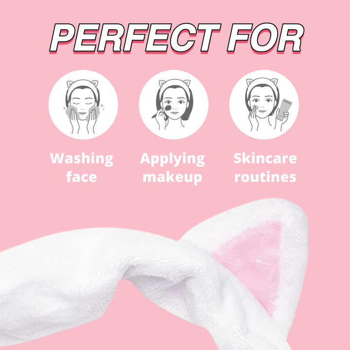 Elastic hair band by I Dew Care , shaped like white cat ears, shields the face during skincare routines by helping keep hair back, ensuring the face is clear for cleansing or makeup application.