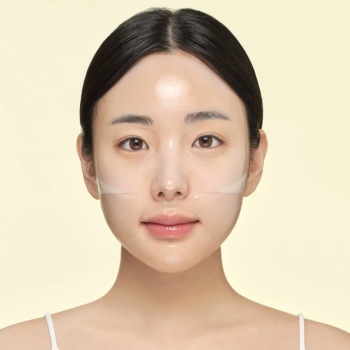 Gently remove the mask once it becomes transparent and press the remaining product into the skin with your hands to enhance absorption.