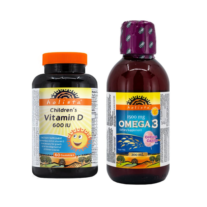 شراب هوليستا أوميغا 3 بعبوة سعتها 200 مل تكفي مدة شهرين، وهو مصنع خصيصًا ليحبه الأطفال بعيدًا عن نكهة السمك المرافقة لأوميغا 3 في العادة، هوليستا تقدمه كشراب شهي ولذيذ مغذي يحبه الأطفال ويطلبونه لنكهته المميزة، كما يحتوي هذا الشراب على فيتامين د (400 وحدة دولية).
