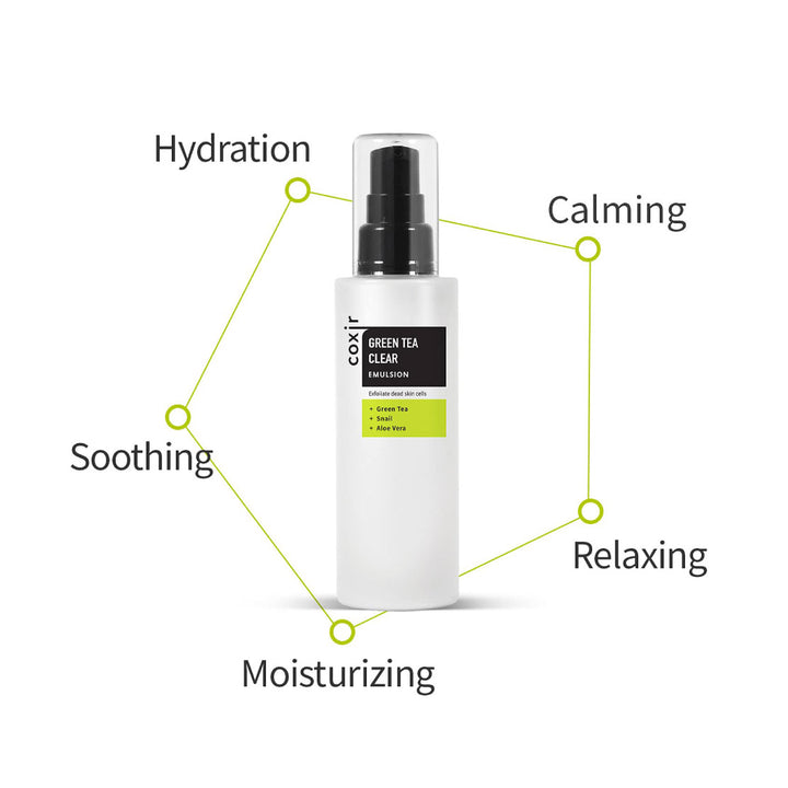 يمتلك مستحلب الشاي الأخضر خفيف القوام وسريع الامتصاص القدرة على تقليل حب الشباب وتهدئة البشرة وترطيبها في آنٍ واحد خلال فترة قصيرة من بدء الاستخدام.