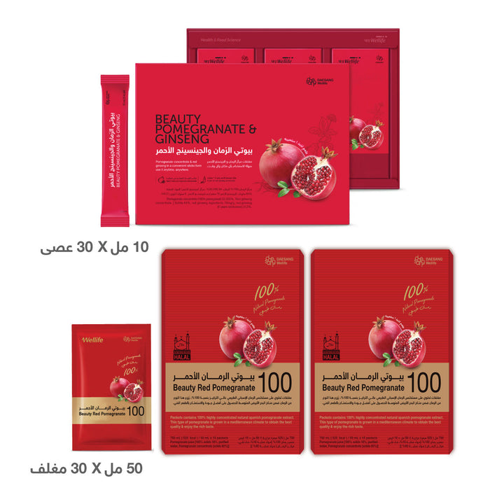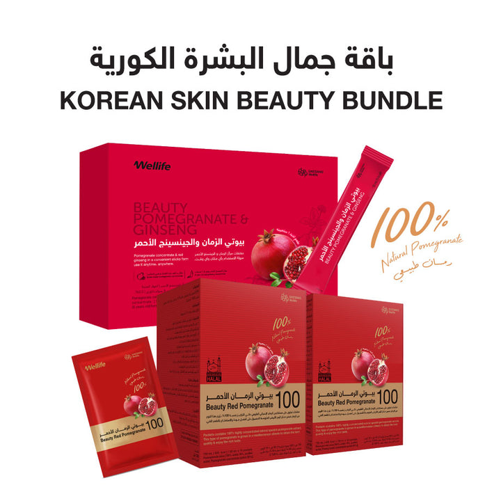 تحتوي هذه الباقة على منتجات كورية تعزز جمال البشرة ونضارتها من الداخل إلى الخارج؛ لاحتوائها على عناصر غذائية غنية بأهم الفيتامينات لدعم صحة البشرة ويعد المكوّن الأساسي لها خلاصة الرمان المنتقى بعناية للحصول على أفضل جودة.