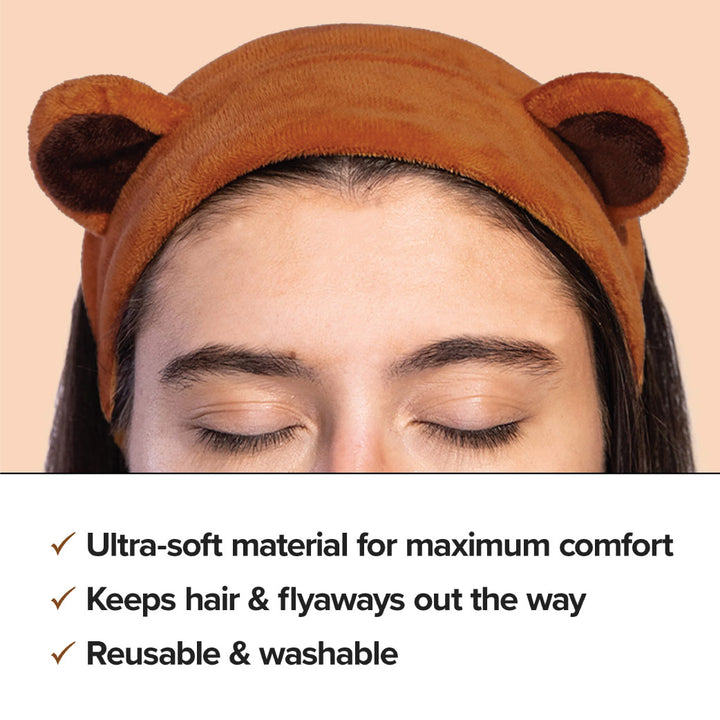 تسهّل ربطة الشعر المرنة على شكل الدب البني تنظيف البشرة اليومي بالغسول وتنظيف المكياج فقط من خلال ارتدائه على الرأس دون التسبب بأي ضغط على الشعر والرأس، لتصميمه المريح وخامته الناعمة والآمنة على الشعر.