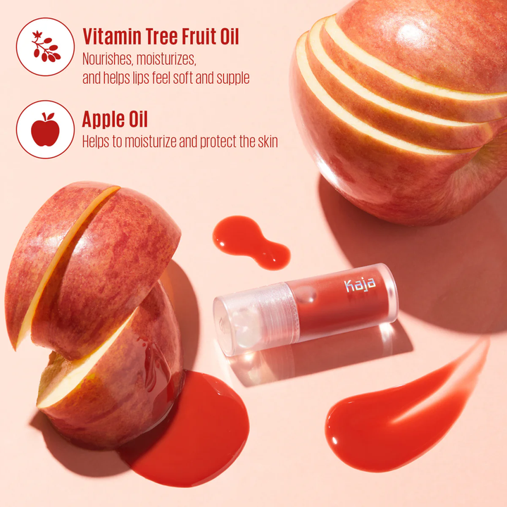 كاجا جوسي جلاس ليب أويل زيت الشفاه فائق اللمعان والترطيب المستوحاة من الفواكه بخلاصة زيت الجوجوبا، زيت زهرة الكاميليا، وزيت ثمر الورد، يبرز امتلاء الشفاه بتركيبة خفيفة غير لزجة بتمريرة واحدة فقط.