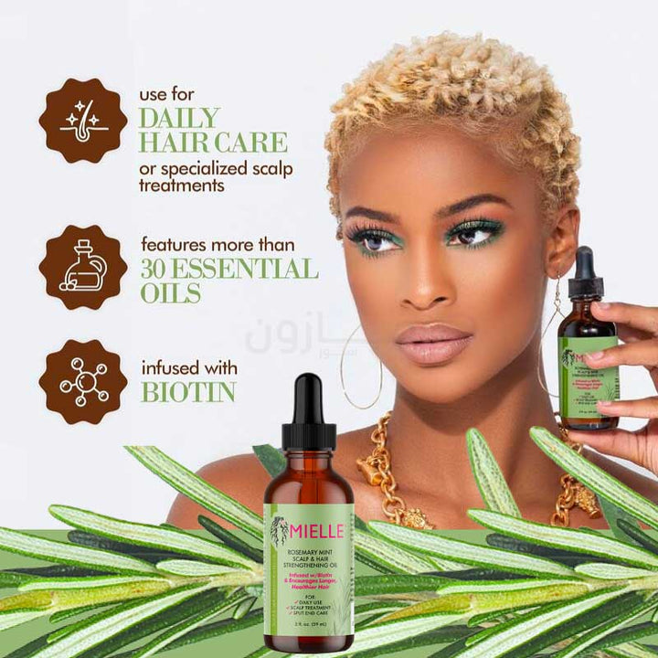 يحتوي هذا المنتج على كلًا من زيت إكليل الجبل والنعناع التي تحفّز الدورة الدموية في فروة الرأس مما يزيد نقل الأكسجين لبصيلات الشعر وبالتالي الحصول على شعر طويل، كثيف وقوي.