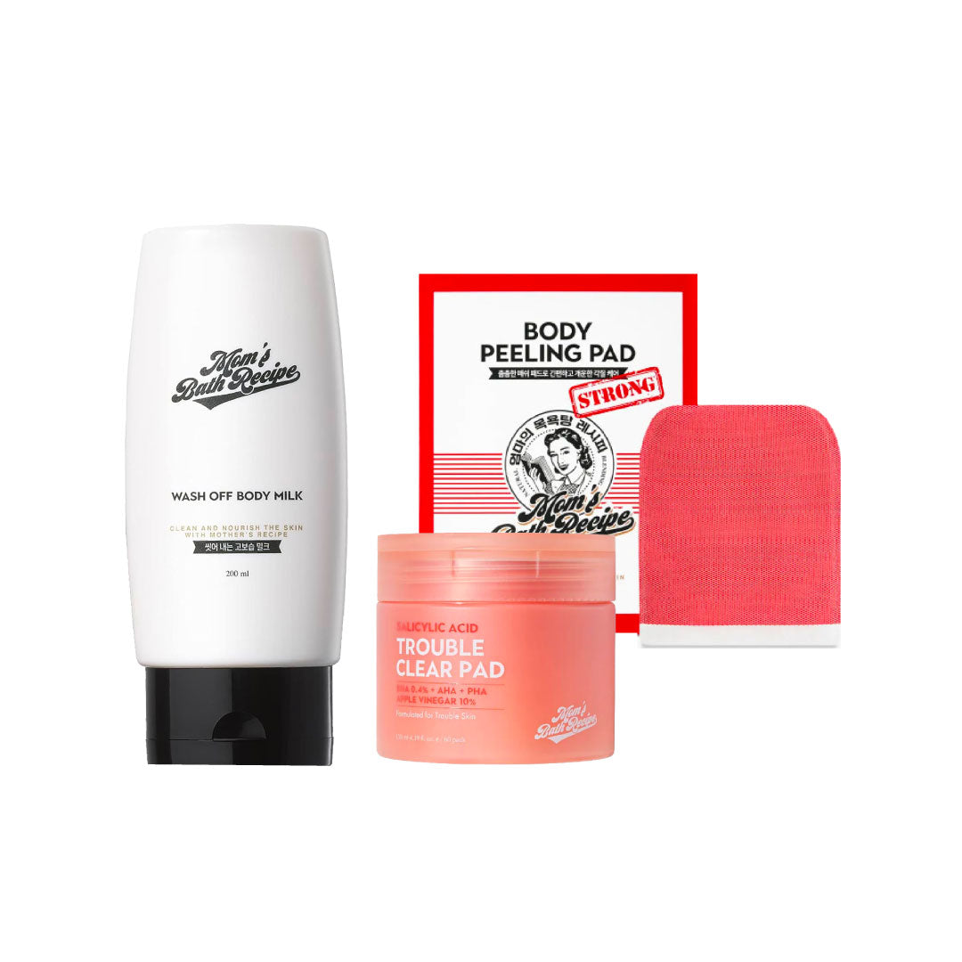 تقدم هذه الباقة مجموعة من منتجات العناية بالبشرة للتخلص من خلايا الجلد الميت والشوائب المسببة مشاكل عديدة أهمها ظهور البثور وحب الشباب والالتهابات بالإضافة إلى تشويه نسيج البشرة، وتتسم هذه المنتجات بقدرتها على التقشير الطبيعي والترطيب دون التسبب بأي تهيج، يُرفق مع هذه الباقة هدية مجانية وهي أداة تدليك الجواشا؛ لتدليك كلًا من الوجه والجسم وتعزيز امتصاص المنتجات في البشرة.
