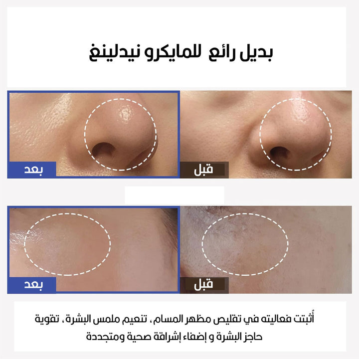 - تطبيق كمية كافية من السيروم على البشرة بعد تنظيفها واستخدام التونر دون الاقتراب من منطقة العينين والشفاه.